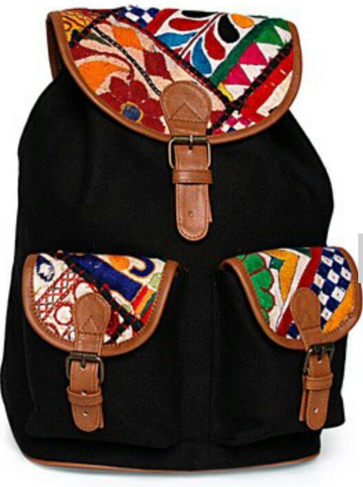 So, long long ago so long ago, a blogger friend had a post about a beautiful studded bag she had and I realized I had a similar backpack full of beautiful embroidery and I thought why not a post on that.!