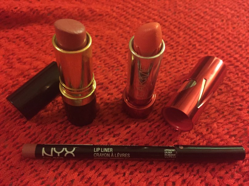 From left to right: Revlon lipstick, Lakme lipstick, NYX Lip liner