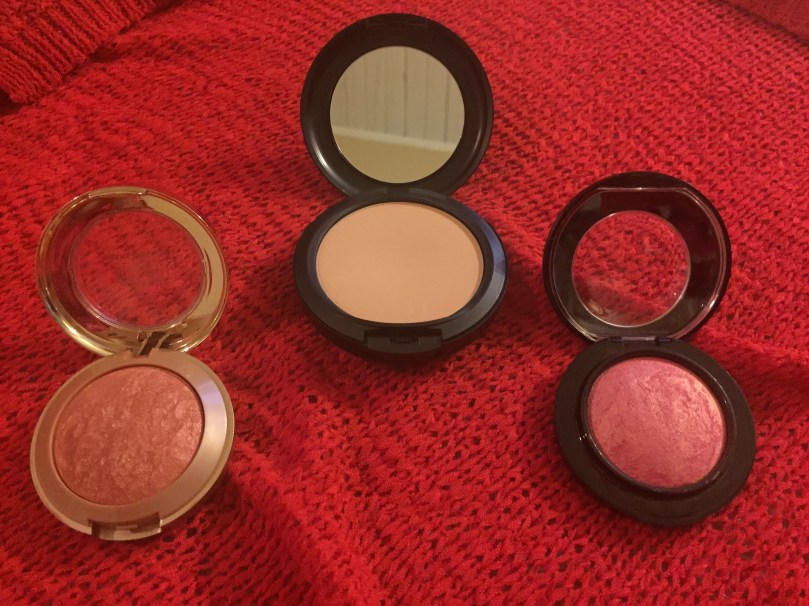 From left to right: Milani baked blush, MAC studio fix foundation powder, MAC petal power blush