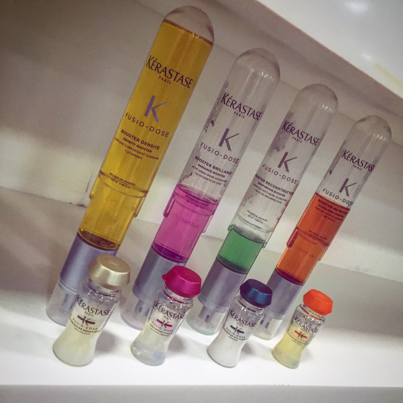 The Speciality of the Fusio Dose ritual lies in the conditioning. They have a mixture of five different boosters and five different concentrates which are in test tubes and tiny glass bottles respectively and according to what each person’s hair requires, the appropriate booster and concentrates are mixed to give you a personalised solution! (Are you a woman of specifics? To know all the teeny tiny details about this treatment, click here!)