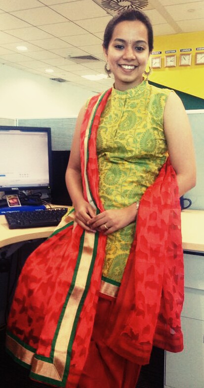 In India, a short shirt with some traditional embroidery or motif work done on it is called a kurti and I have been wearing this one for a while now with boring old blue jeans. It was only recently that I realized the red delicate embroidery on its neckline and sleeves lends itself so beautifully to be teamed with red harem pants. So I tried it and it was a real hit at work 😍
