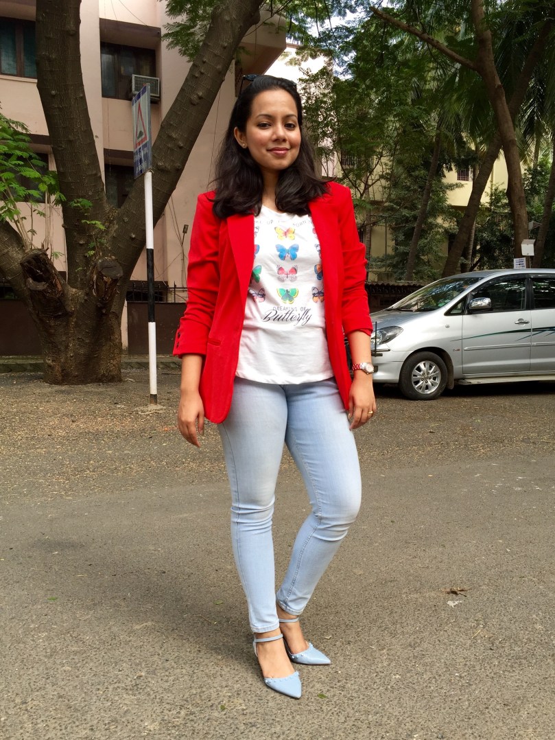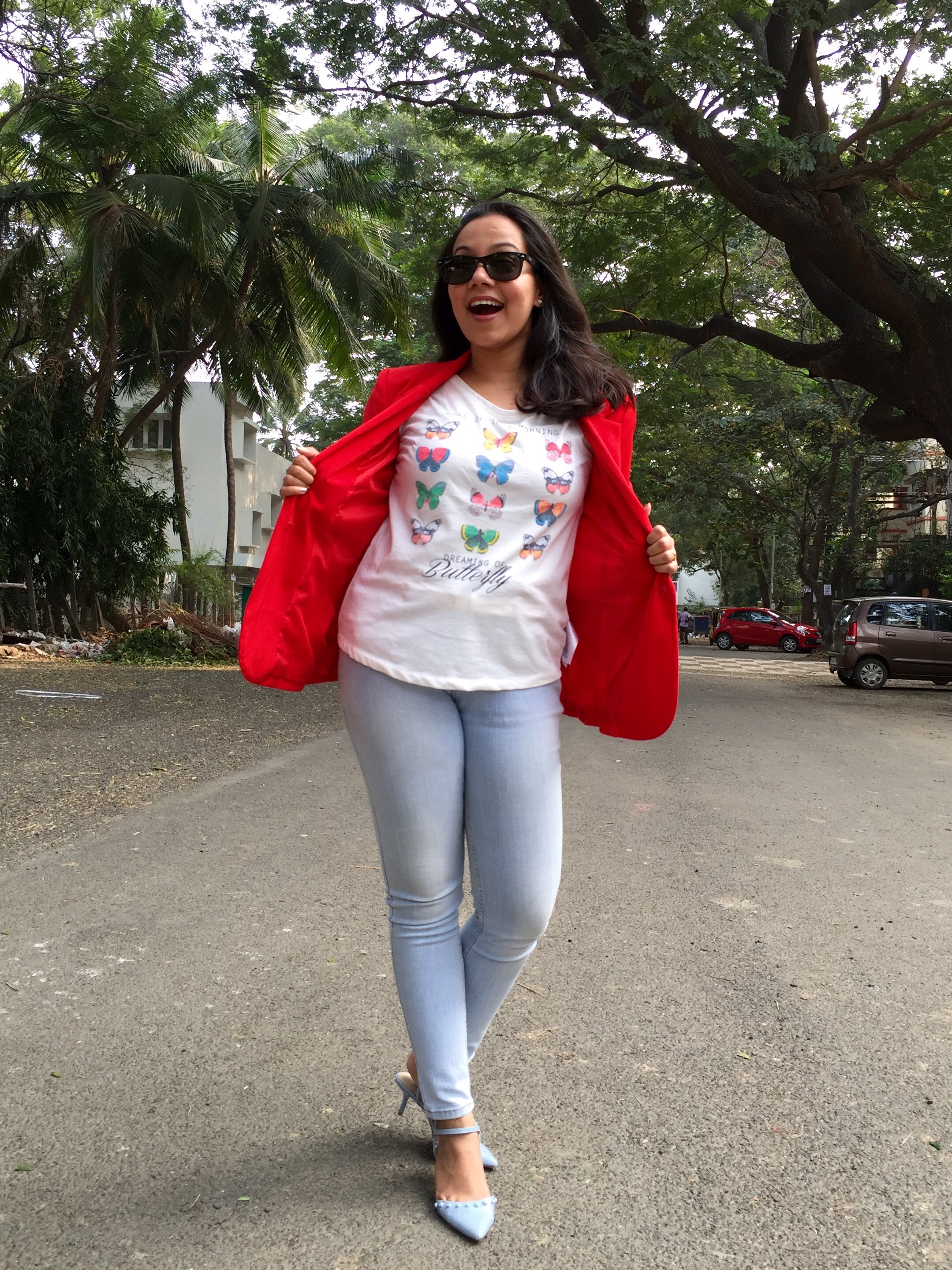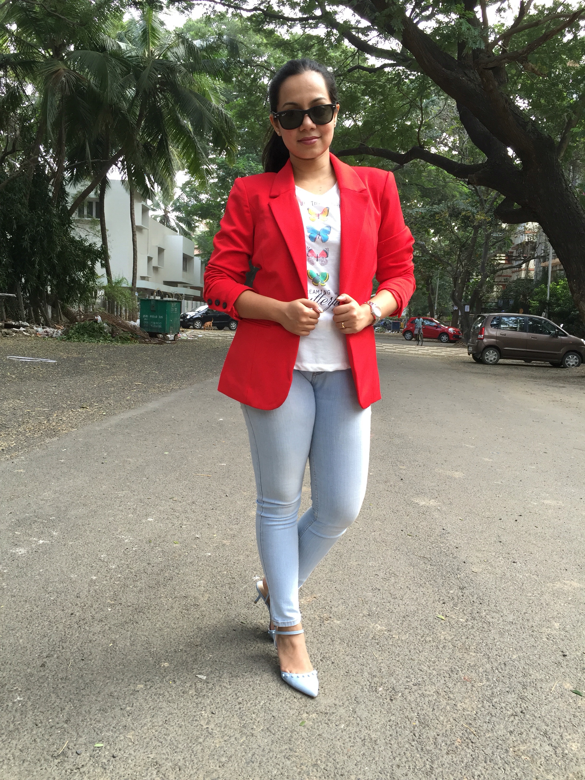 Adding an extra layer like a shirt or a jacket or a blazer is the easiest way to look put together! Since I’ve done the shirt over tshirt look several times (and since I simply wanted to wear the red blazer) I decided to go for a blazer 😬👍🏽 Take a looky!