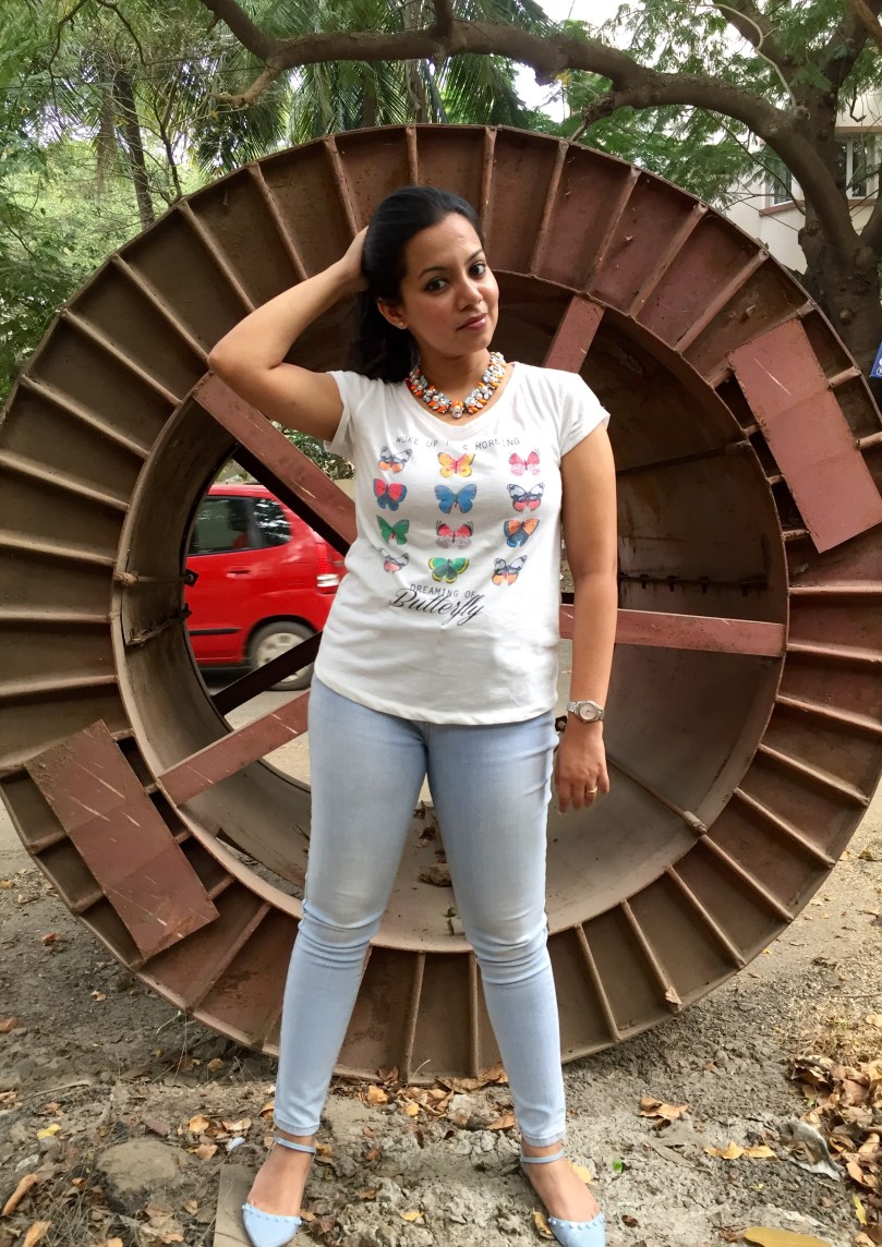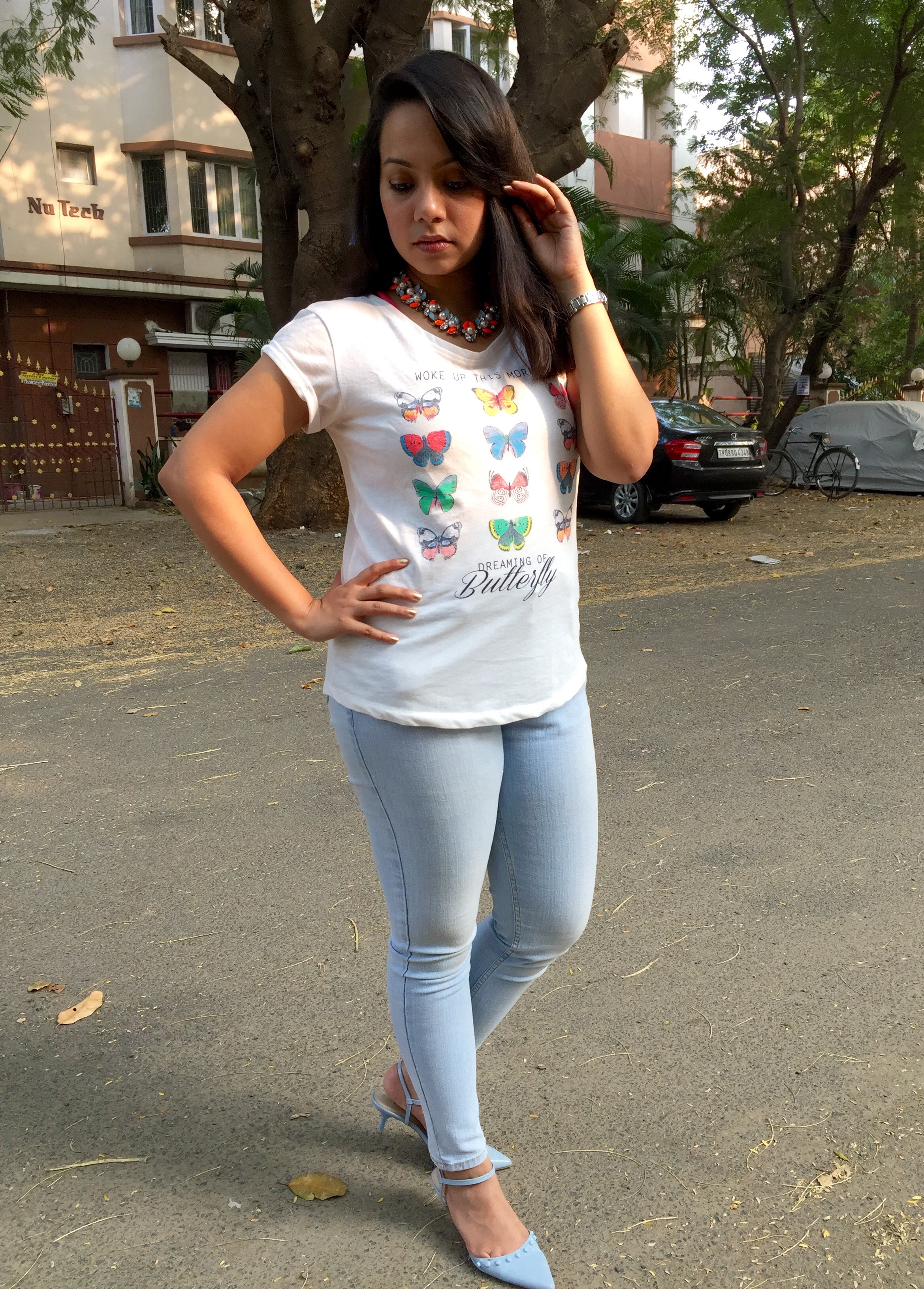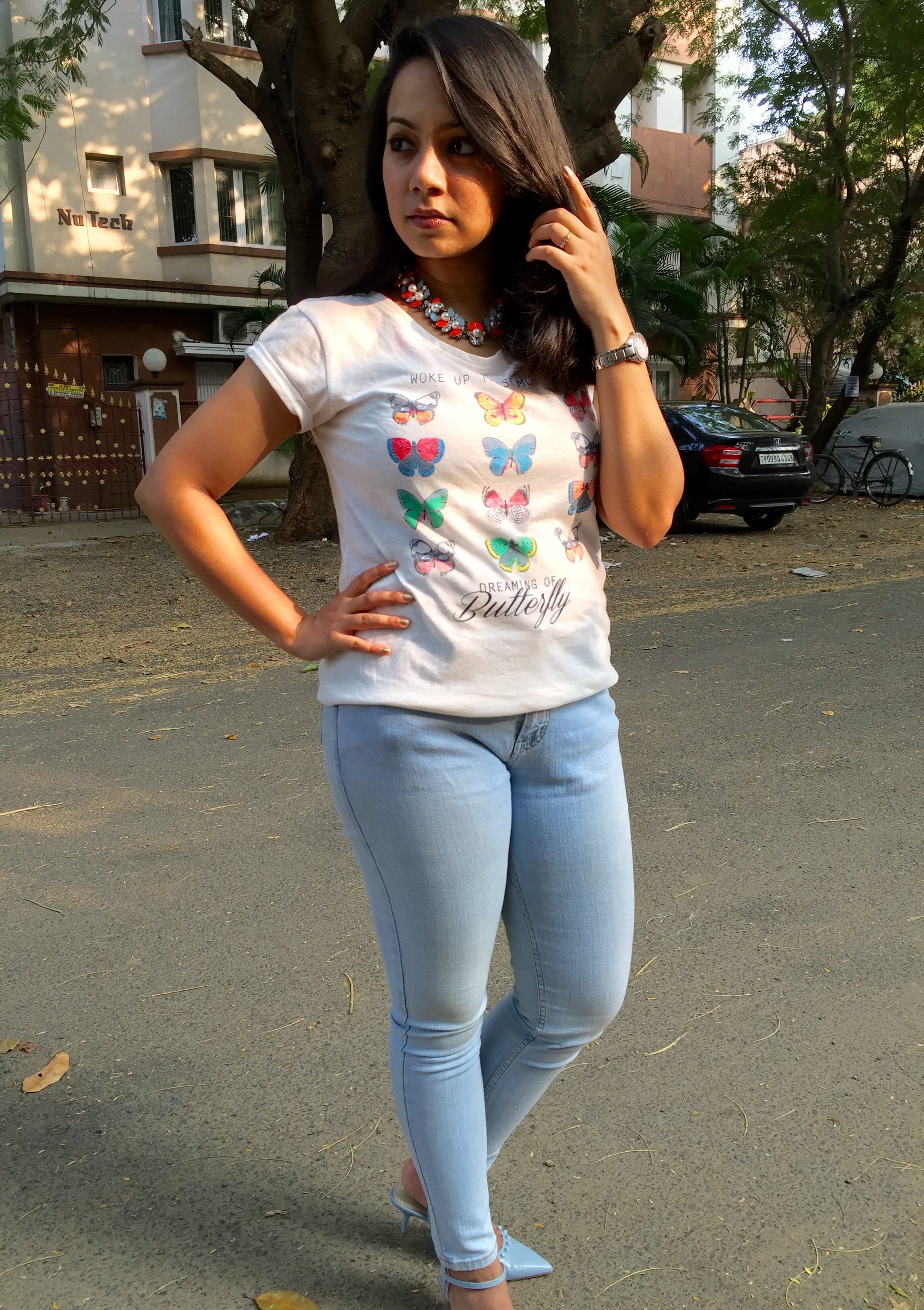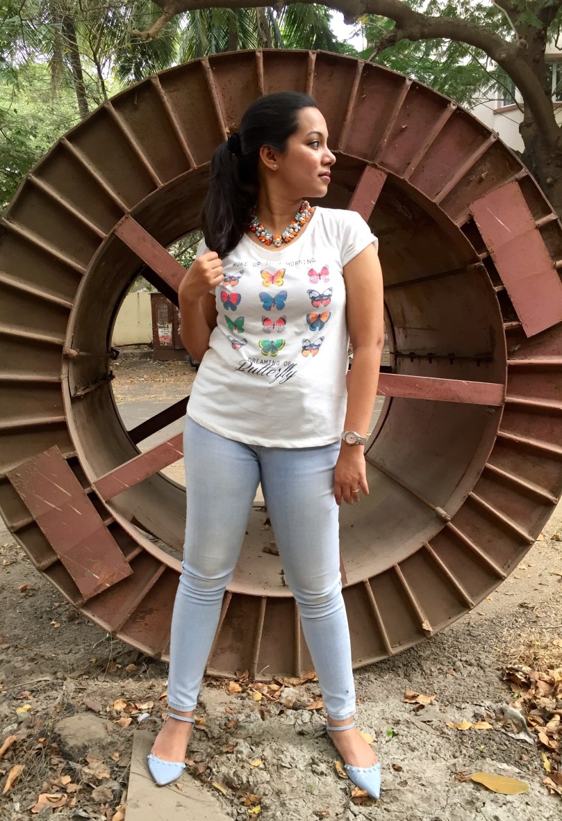 For the two ideas of this post I chose a colorful graphic tshirt full of butterflies!
