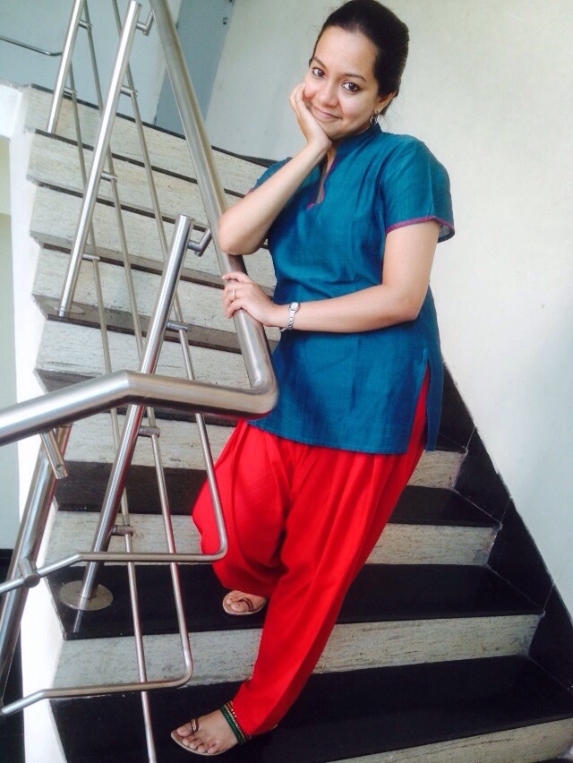 That’s right! I wore this bright (I’ll blind you with this skirt type of bright) skirt with a very plain ethnic Kurti or short top!